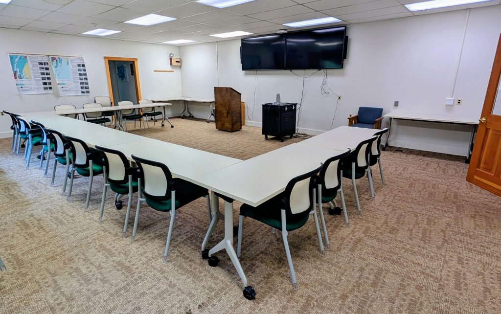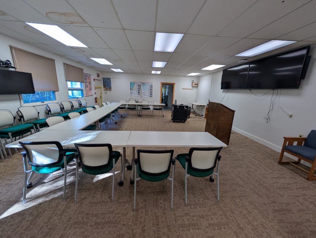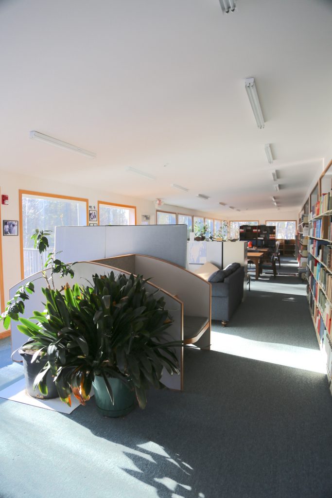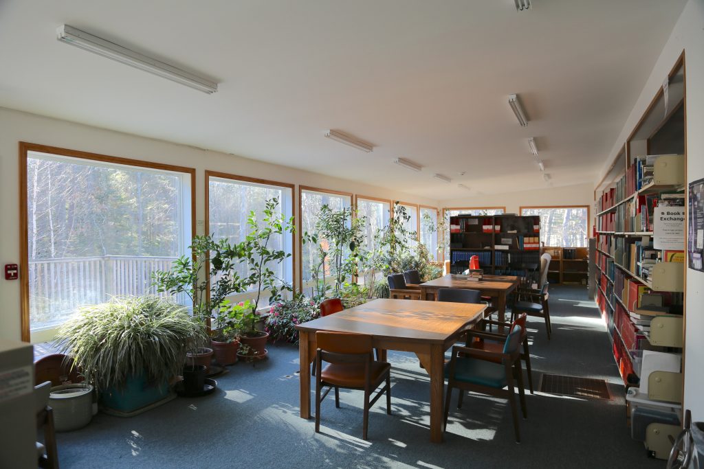 The Darling Marine Center Louise Dean Library is located on the upper campus, tucked away by the edge of the woods. There is a small conference space with AV equipment, which can be rented out to visiting groups. The main library space contains a collection of marine science related texts, as well as shared computers and sunlit study spaces surrounded by plants. There is a newly built back porch with a picnic table for a quiet outdoor space to host a meeting, eat lunch, or study.