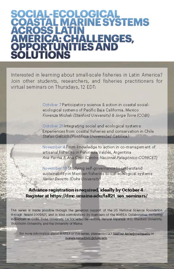 Interested in learning about small-scale fisheries in Latin America? Join other students, researchers, and fisheries practitioners for virtual seminars on Thursdays, 12 EDT.